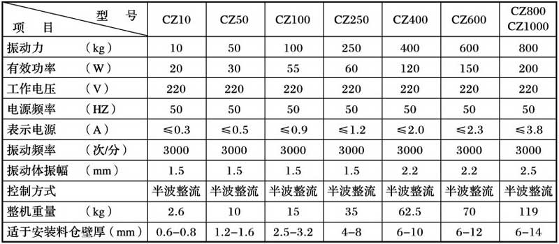 CZ型倉(cāng)壁振動(dòng)器的控制原理為半波整流電磁線圈由交流電經(jīng)二極管整流供電。另外,我們廠還生產(chǎn)與CZ系列倉(cāng)壁振動(dòng)器相配套的各種型號(hào)的控制箱。它可以實(shí)現(xiàn)振幅的手動(dòng)連續(xù)調(diào)整。連續(xù)、均勻、遠(yuǎn)距離地控制倉(cāng)壁振動(dòng)器對(duì)料倉(cāng)的高頻振動(dòng)和沖擊。
