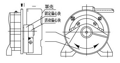 振動器激振力大小正比于偏心塊的質(zhì)量,偏心距和角速度的平方。振動器每端出軸均有一個固定偏心塊和一個活動偏心塊、改變活動偏心塊與固定偏心塊之間的夾角即改變偏心質(zhì)量,可得到不同的激振 力。電機(jī)激振力的大小等于固定偏心塊上的振動力標(biāo)牌讀數(shù)乘以2/1000。電機(jī)出廠時固定偏心塊和活動偏心塊完全重合,激振力為額定激振力。